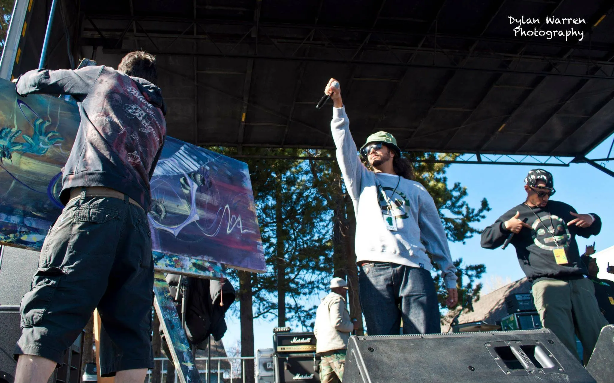 I painted this piece live on stage with the hip hop group “Hieroglyphics” at an unforgettable event outside the Wellness Center Dispensary in South Lake Tahoe. At one point I turned around and the sheer number of people watching was wild—-thousands in the crowd. I’ve painted in front of crowds before but this time, a wave of nervousness hit me, and I quickly turned back and just kept painting, letting the energy of the music and the moment guide my hands. That energy poured directly into the work, sparking something raw and unplanned. This painting speaks to the inner force and light we all carry within us, often without realizing it. It reflects that moment of awe when hidden power rises to the surface and creation flows through us in ways we never knew we were capable of.